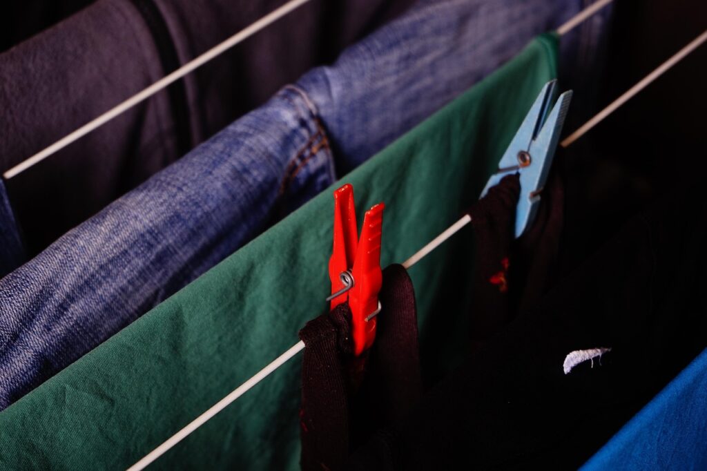 La muffa si sviluppa quando l’umidità supera il 60% e ristagna per molte ore. Il primo trucco è non accumulare troppi panni sullo stendino: lascia sempre spazio tra un capo e l’altro. Così l’aria circola e l’acqua evapora più in fretta.